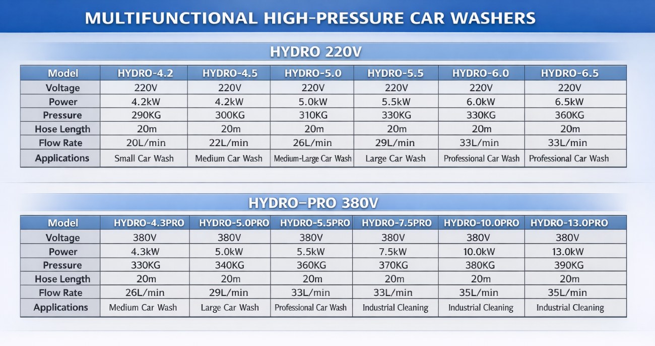 آلة غسيل السيارات الكهربائية عالية الضغط HYDRO Pro يُعد حلاً قوياً وموثوقاً لـ التنظيف التجاري والصناعي وتنظيف السيارات. مزودة بمحرك عالي الأداء ومضخة نحاسية متينة، فهي توفر ضغطًا قويًا وثابتًا لتنظيف عميق وفعال.