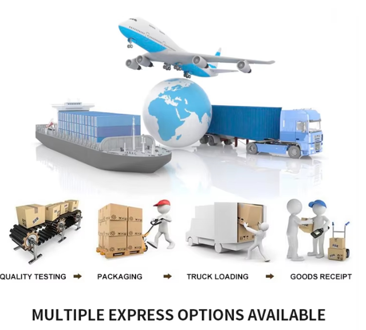 خيارات شحن متعددة تشمل النقل البحري والجوي والبري.